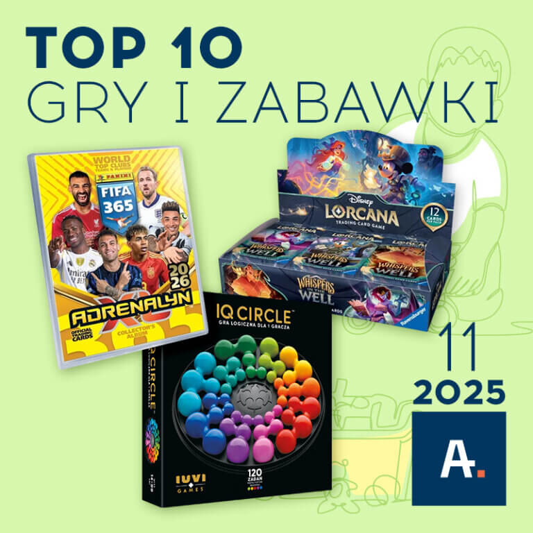 W listopadzie w segmencie zabawek wyraźnie dominowały produkty kolekcjonerskie i karciane, z bardzo mocnym popytem na serie FIFA 365 oraz tytuły strategiczne, takie jak Slay the Spire czy Gwint. Wysoko plasują się też gry rodzinne i świąteczne, co potwierdza sezonowy wzrost zainteresowania tego typu asortymentem.