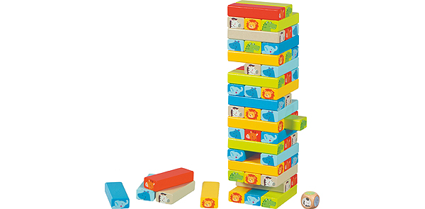 Kolorowa, dziecięco ilustrowana gra z motywem zwierzątek, która wymaga spokojnej ręki, odrobiny szczęścia przy rzucie kostką i daje dużo radości z układania elementów. Idealna dla dzieci – rozwija zręczność, cierpliwość oraz koordynację wzrokowo-ruchową. Wymiary produktu: 7,5 × 7,5 × 27,5 cm.