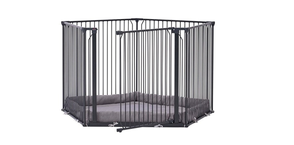 Kojec można przekształcić w bramkę zabezpieczającą i dowolnie konfigurować kształt i rozmiar do pomieszczenia. Można go też używać na zewnątrz – jest odporny na rdzę. Lite pręty i wąskie odstępy zapobiegają zaklinowaniu rączek czy stóp dziecka. Furtka otwiera się w obu kierunkach jedną ręką.