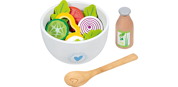 Edukacyjny 24-częściowy zestaw Salat Set Vitalbowl to kreatywna zabawa i nauka zdrowego odżywiania. Naturalne drewno i filc sprawiają, że każda dziecięca kuchnia staje się miejscem odkryć! Średnica miski: 13 cm.