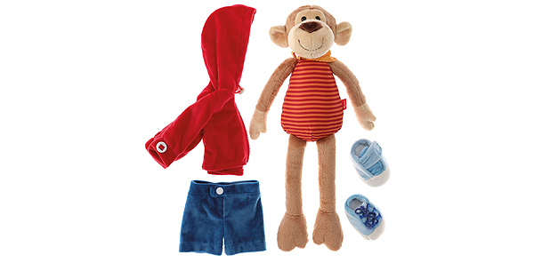 Małpka zaprasza do zabawy w przebieranie. Ćwiczy rozpinanie i zapinanie guzików, zamków błyskawicznych, zatrzasków, rzepów, a nawet wiązanie kokardek. Pozwala doskonalić motorykę małą i precyzję. Różnorodne tekstury materiału i dopracowane detale, zapraszają dziecko do eksplorowania zabawki.